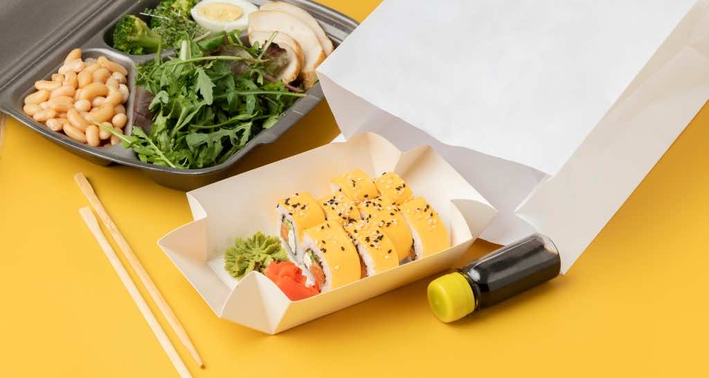 Как правило для супов, напитков и прочих жидких блюд используют глубокие контейнеры или миски с высокими бортиками и плотно-прилегающей крышкой, чтобы избежать проливания. Для гамбургеров, роллов и шаурмы используют жесткую упаковку, которая сохранит первоначальный образ продукта.