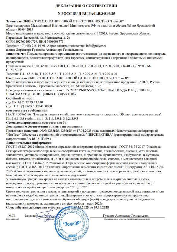 Декларация о соответствии №РОСС RU Д-RU.РА01.В.34846-25