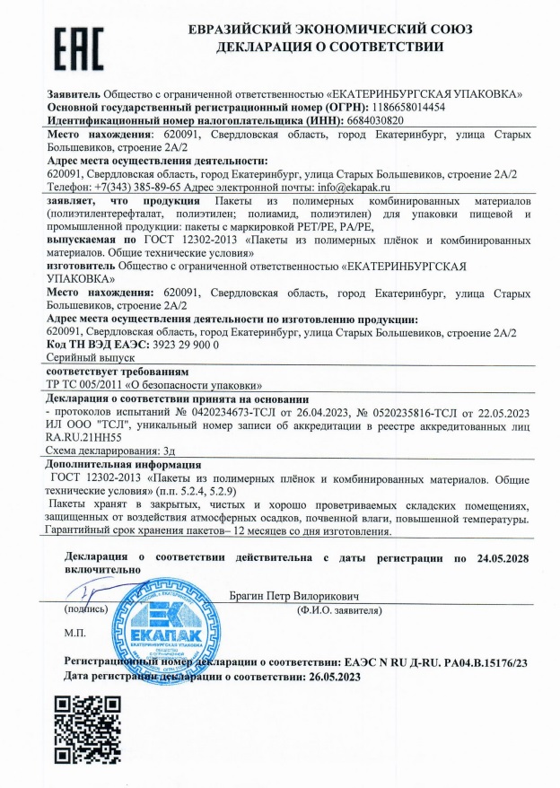 Вакуумный пакет 200х300 65мкм ПЭТ/ПЭ